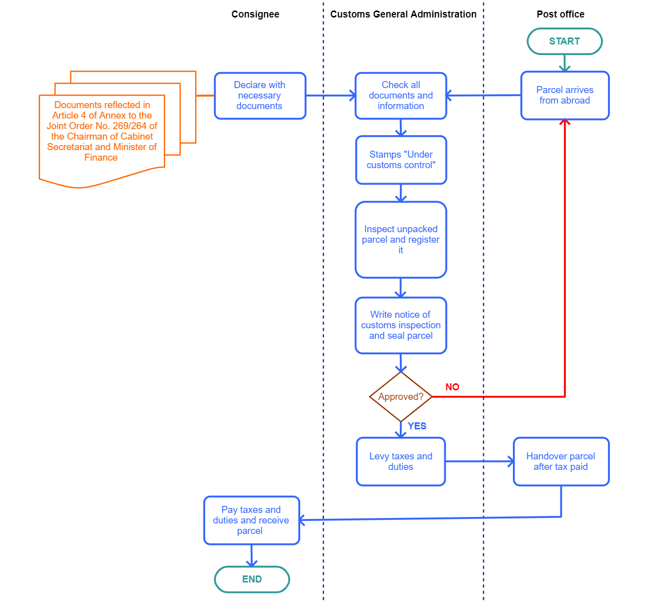| Procedure Name | Procedure for international postal items crossing the customs border |