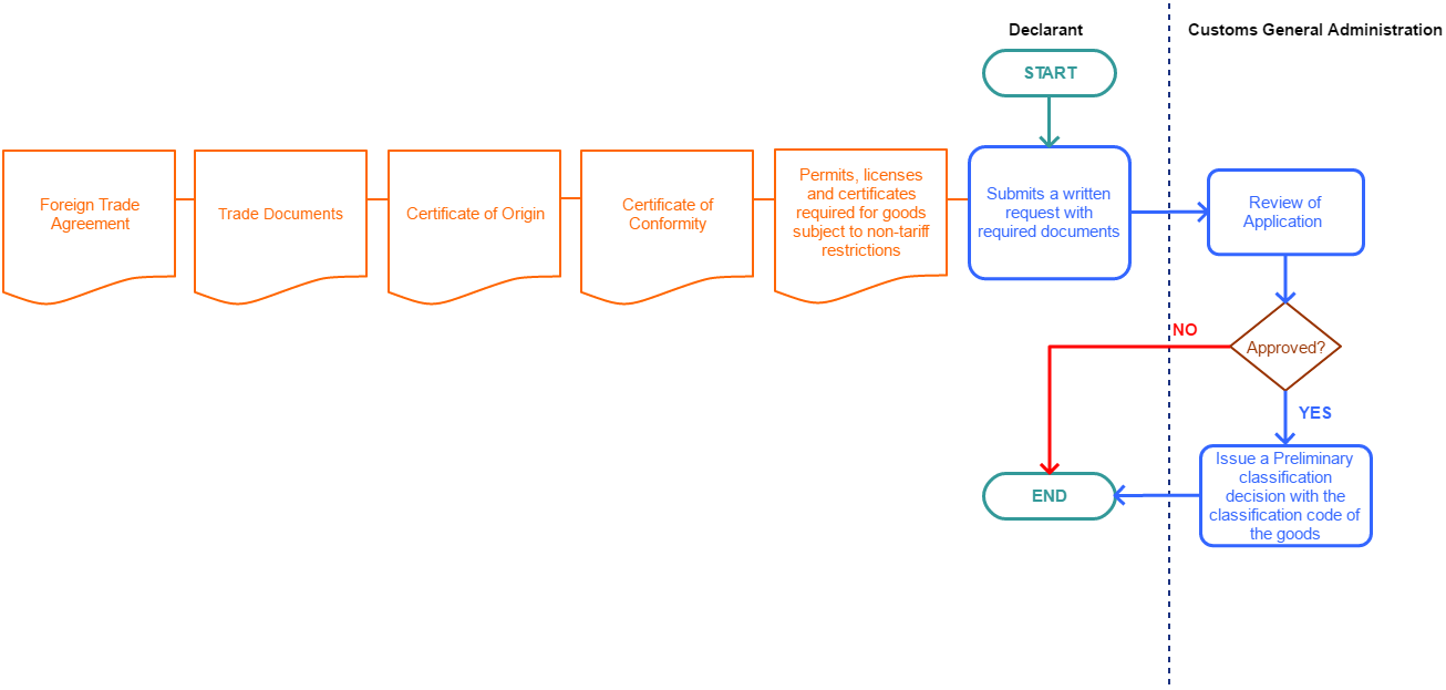 The Customs shall issue a Preliminary classification decision with the classification code of the goods specified in the request, materials, documents and information submitted by the declarant.